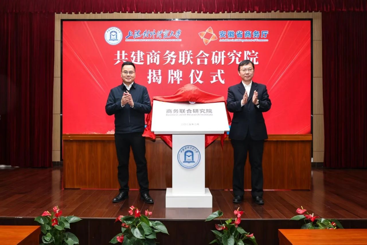 上海对外经贸大学与安徽省商务厅举行“商务联合研究院”签约揭牌仪式
