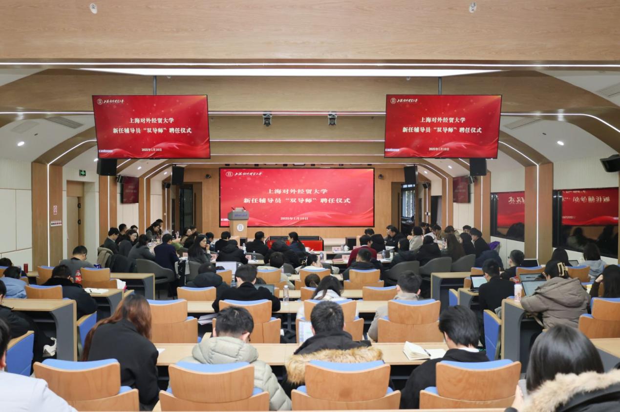 为深化落实党的二十届三中全会精神和全国教育大会精神,1月10日下午,上海对外经贸大学2024年度学院学生工作总结考评会暨新任辅导员“双导师”聘任仪式在松江校区图文信息大楼213报告厅举行。校党委副书记、副校长沈艺出席并讲话,相关职能部门负责人、相关学院党委书记以及学工系统全体教师参会?;嵋橛傻澄Вㄑ校┕げ坎砍ょ言系阎鞒?。聘任仪式上,沈艺为辅导员“双导师”颁发聘书。2025年,学校分别为9名2024年新任辅导员配备了15名职能部门导师和学院导师,从职业发展、职业素养和职业自信等方面,切实加强对新入职辅导员的日常指导和关心。聘任仪式后,举行了2024年度学院学生工作总结考评会。11个学院党委(党总支)副书记分别围绕2024年度学院学生工作举措、具体成效以及下一年度工作思路进行了现场汇报,校领导及相关职能部门负责人担任评委。沈艺对2024年度学工队伍取得的工作成效给予了充分肯定,对新聘任的辅导员导师、大力支持学生工作的相关职能部门以及辛勤付出的辅导员们表示衷心感谢。她表示,2024年学工队伍齐心协力,团结奋进,不断推动落实“新时代立德树人工程”和“时代新人铸魂工程”,为学校的人才培养和学生