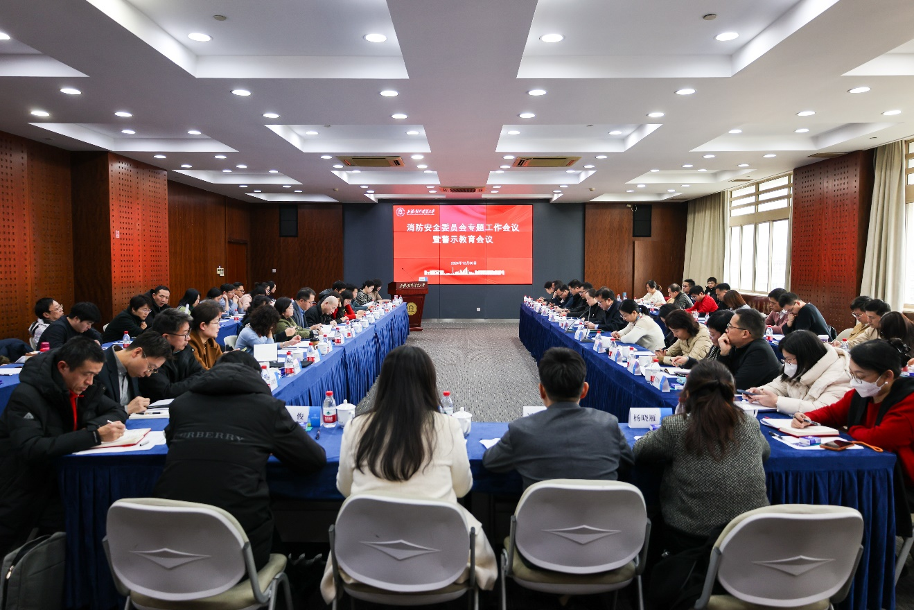 为进一步推进落实《上海市教育委员会安全生产领导小组关于开展高校消防安全隐患排查专项行动的通知》,守牢校园消防安全底线,2024年12月30日下午,学校在松江校区图文信息楼503会议室召开消防安全委员会专题工作会议暨警示教育会议。校长汪荣明,校党委副书记、副校长沈艺出席会议,学校消防安全委员会成员及各单位、部门安全员80余人参加会议。会议由校党委常委、宣传部长、消防安全委员会常务副主任郭茜主持?;嵘?,汪荣明就如何贯彻落实上级有关会议和文件精神、落实学校消防安全攻坚专项行动明确工作要求:一是要立足防患于未然,全面筑牢消防安全防线。构建完善消防安全责任体系,确保各司其职各负其责;织紧织密消防安全防护网,确保责任敲实到点到人;常态化开展师生安全教育,提升灭火救援专业化能力。二是要紧盯重点领域,深入排查消防安全隐患,重点关注7类校园重点消防隐患排查与整改。三是要严肃追责问责,依靠扎扎实实的防控举措,逐级传导、穿透、压实消防安全责任。他强调,消防安全工作责任的穿透落实是一个系统工程,需要各级领导和全体师生的共同努力;宁可十防九空,也不能用而不备,务必以“时时放心不下的责任感”,齐心协力、全力以赴打