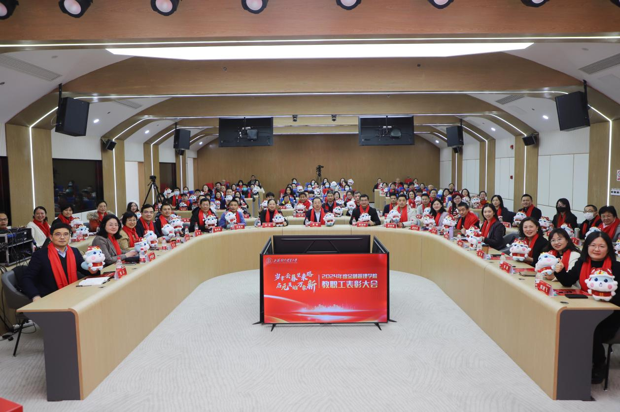 1月7日,金融管理学院召开2024年度教职工表彰大会,大会以“岁聿云暮望来路 启元复始万象新”为主题,总结一年来学院在各方面取得的成绩,对2025年度工作予以展望,并表彰在学院各项工作中做出突出贡献的先进个人。校党委副书记吴毅出席会议,相关职能部门负责人、金融管理学院全体领导班子成员、研究生校外导师代表和全体教职工共同参会?;嵋橛山鹑诠芾硌г旱澄笔榧枪赜≈鞒帧N庖愦硌O蚧竦帽碚玫慕讨肮け硎救攘易:?,向学院全体教职工致以新年祝福。他指出,过去一年里,金融管理学院党委坚持党建引领,扎实开展党纪学习教育,以巡视整改和深化综合改革为契机,破立并举、先立后破,取得了丰硕成果。他对学院新一年工作提出三点希望:一是加强引领,深化党建工作与业务工作双融双促。把党建和业务工作同谋划、同部署,为学院高质量发展提供坚强政治和组织保证。二是建强队伍,坚持以教育家精神铸魂强师。将教育家精神贯穿于课堂教学、科学研究、社会实践等各环节,把教师职业发展的“小我”融入教育强国的“大我”之中。三是锚定目标,助力学校综合改革行??稳致远。聚焦学校发展大局、重大改革任务进行统一谋划部署,进一步凝聚共识、凝练特色,用实际