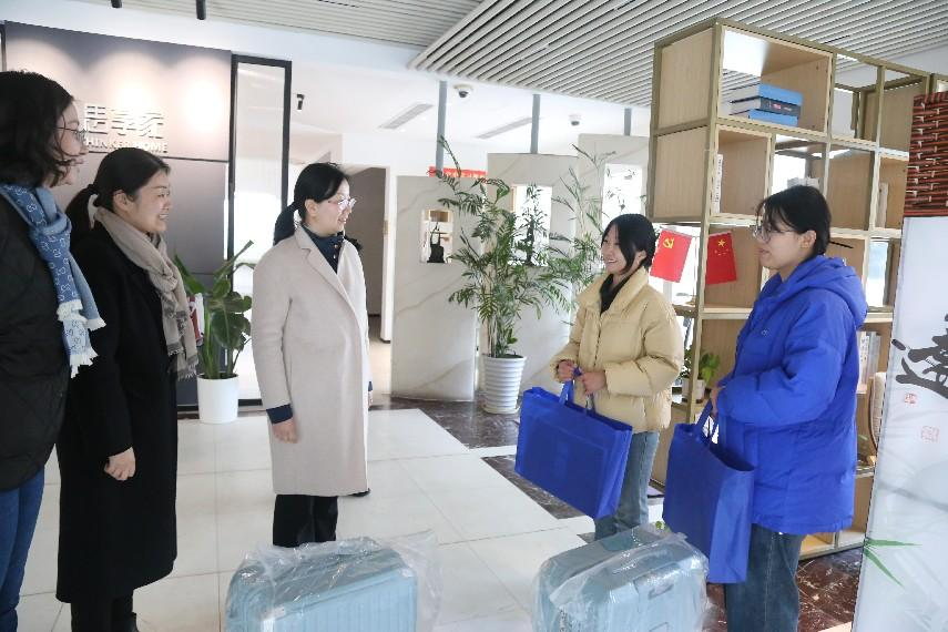 1月2日,新年伊始,校党委副书记、副校长沈艺代表学校来到长宁校区“一站式”学生社区,看望慰问学生,送去冬日里的关怀与温暖。校党委学(研)工部负责人、相关学院党委副书记以及社区办老师等陪同参与。沈艺一行为学生送上了实用的行李箱和学习五件套等慰问品,并与学生亲切交流,详细询问了毕业论文完成和实习情况。沈艺叮嘱同学们认真准备即将到来的毕业论文预答辩,鼓励同学们在求职过程中积极面对挑战,展现自己的综合素质和竞争力。学生们表示,在新年伊始就收到来自学校的慰问和关心,感到非常温暖。据悉,今年我校已向549名家庭经济困难学生发放了冬季送温暖物资,向518名外地困难学生发放了寒假回家路费补贴,切实为学生提供了实质性的帮助和支持。