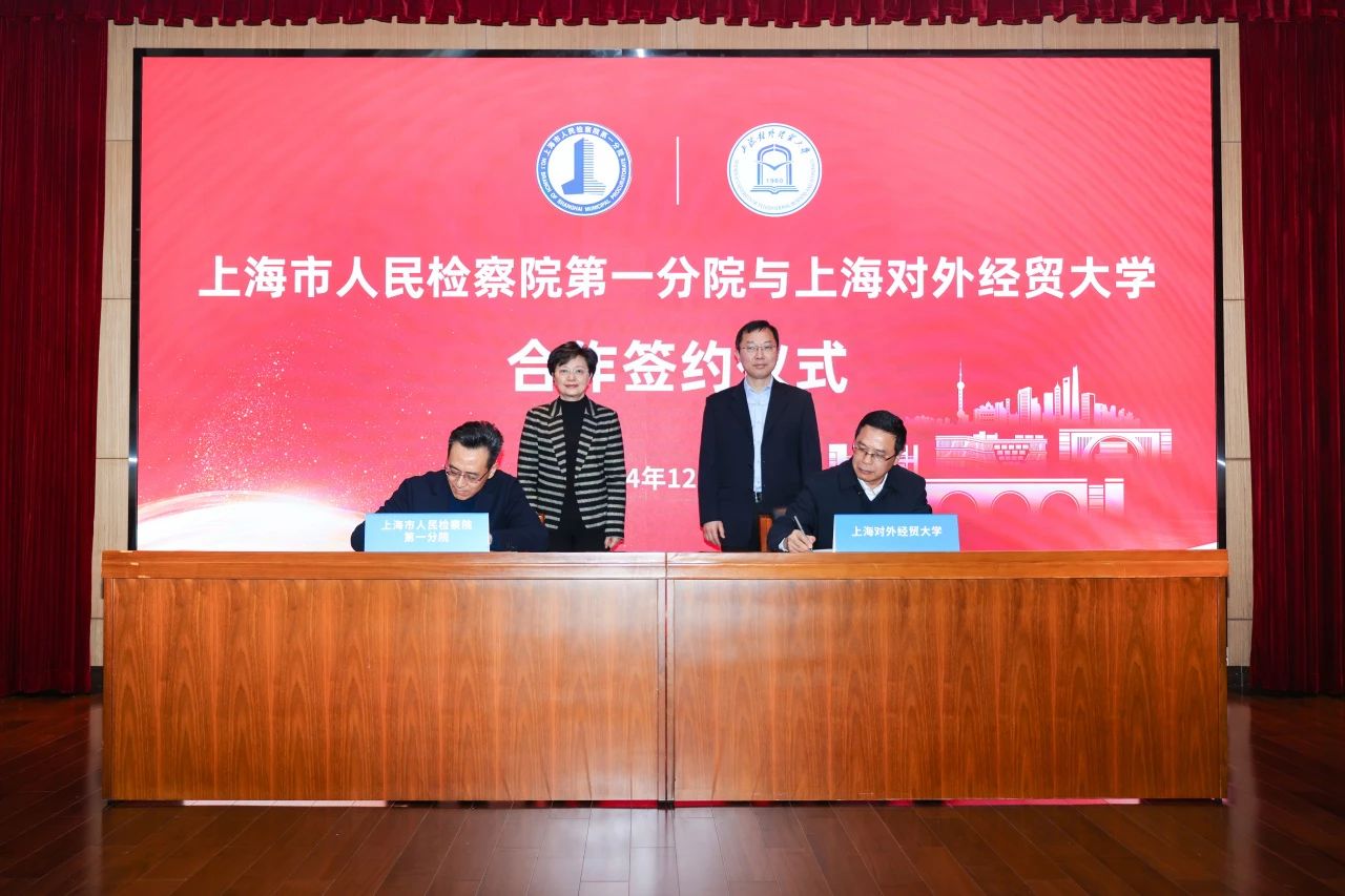 12月24日上午,上海市人民检察院第一分院与上海对外经贸大学战略合作签约仪式在古北校区举行。上海市人民检察院第一分院党组书记、检察长陈思群,党组成员、副检察长殷勇忠,党组成员、政治部主任钱焰青,上海对外经贸大学校长汪荣明,副校长徐永林,以及双方相关单位负责人出席仪式。签约仪式由徐永林主持。