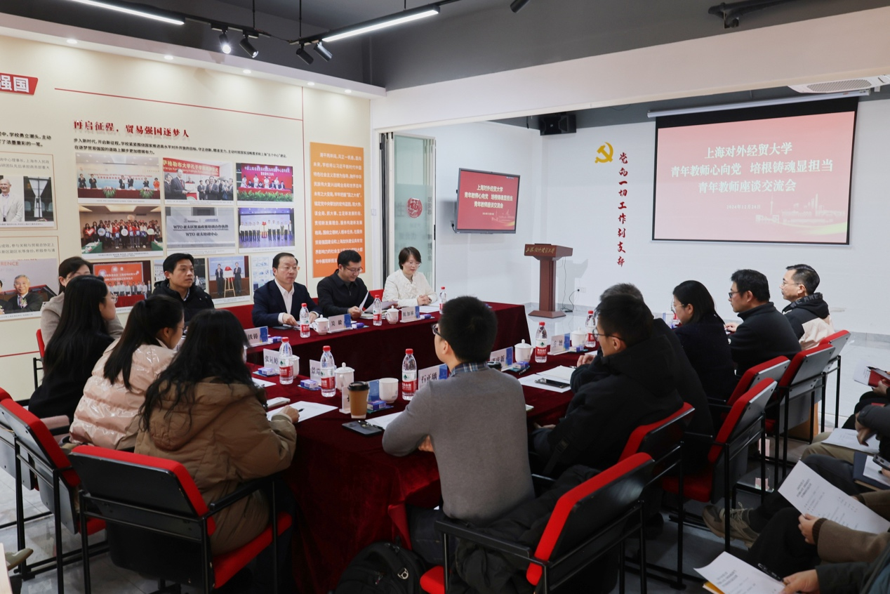 为学习贯彻全国教育大会精神,加强对青年教师的政治引领和政治吸纳,12月26日下午,学校在松江校区党建服务中心召开“青年教师心向党 培根铸魂显担当”青年教师座谈交流会。校党委副书记吴毅,党委组织部、党委教师工作部负责同志及二级单位党组织书记代表、基层党支部书记代表、新进教师代表、新发展党员代表、教师入党积极分子代表、教师入党联系人代表等出席会议?;嵋橛傻澄橹扛辈砍ふ叛嘀鞒?。会上,法学院党委书记乔檀、国际经贸学院电子商务系党支部书记苏庆新分别围绕学院对青年教师的政治引领和培养、支部凝聚助力青年教师成长等作交流发言。工商管理学院戴永辉、国际经贸创新与治理研究院石正瑀、开放教育学院顾巍、国际经贸学院孙乾分别作为在校发展党员教师代表和入党积极分子教师代表,结合自身实际就入党初心和经历感悟进行交流发言。出席会议的新进教师代表现场进行了互动交流。为凝聚青年合力,汇聚奋进力量,进一步探索新时代做好青年教师政治引领的创新路径,学校党委组织部和党委教师工作部在学校党建服务中心设立“星火引航”工作站。党委组织部部长陈加林,党委教师工作部部长、人事处处长张铁铸共同为“星火引航”工作站揭牌。学校严格落实教师