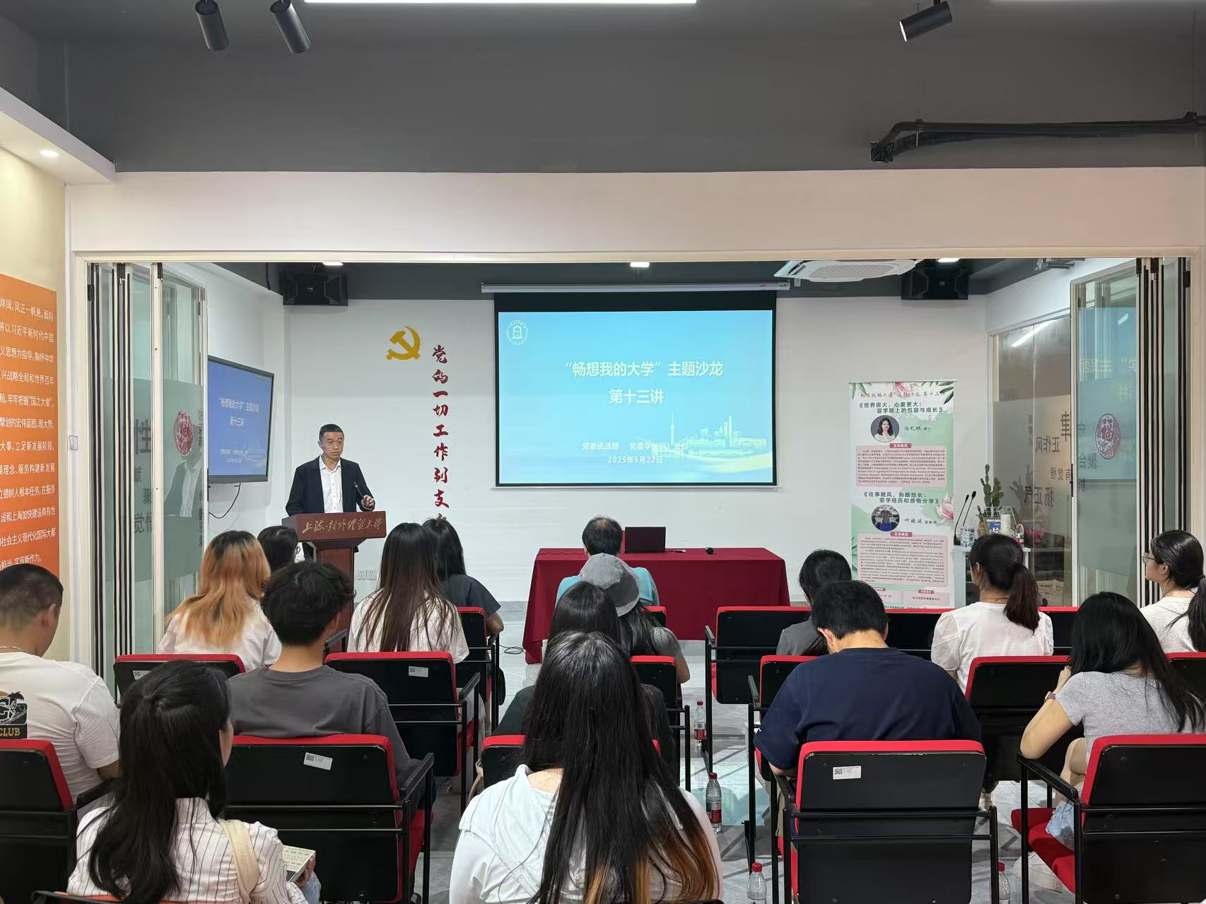 为深入学习贯彻习近平新时代中国特色社会主义思想和党的二十大、二十届三中全会精神,贯彻落实习近平总书记在全国教育大会上的重要讲话精神,充分发挥上海市欧美同学会(上海市留学人员联合会)上海对外经贸大学分会(以下简称“学校分会”)的思政育人力量,不断开创学?!叭恕毙赂窬郑?月22日下午,由党委统战部和党委学(研)工部指导,学校分会和学生事务中心联合举办的“畅想我的大学”主题沙龙第十三讲在松江校区党建服务中心顺利举行。党委统战部副部长(挂职)程琳、党委学工部副部长冯昕、学校分会秘书长赵倩、国际经贸学院何晓波副教授、工商管理学院冯艺璇博士、党委统战部魏嘉、学生处鹿现国以及各学院师生代表30余人参加本次活动?;疃煞腙恐鞒?。冯昕回顾了“畅想我的大学”主题沙龙建设开展情况,充分肯定了活动在拓展学生国际化视野,提升学生跨文化交流能力等方面发挥的重要作用。他强调新时代大学生应以党的创新理论武装头脑,在“畅想大学”的过程中明确个人目标,锚定人生航向,将个人成长融入国家发展大局?;疃殖?,冯昕、赵倩、何晓波和冯艺璇共同向学生代表赠送书籍《我们星球上的生命》,勉励同学们以敬畏之心重新审视人与自然的关系,
