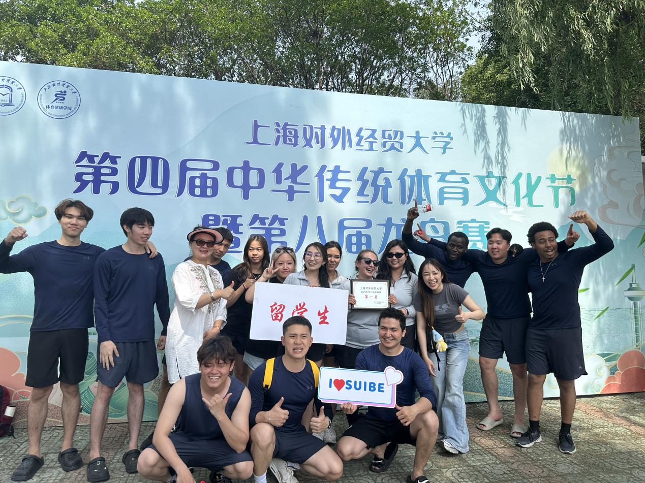 5月27日下午,我校第四届中华传统体育文化节暨第八届龙舟比赛在龙舟码头举行。本届赛事由校体育运动委员会主办,体育健康学院承办,校学生会体育部、校龙舟俱乐部协办。体育健康学院党支部书记李永华、体育健康学院院长张波、体育健康学院副院长文海燕、国际经贸学院傅豪老师、工商管理学院胡心钰老师以及外事处杨卫星老师出席活动开幕式??皇接商逵】笛г貉衔幕鲜χ鞒帧T诳皇缴希挪ㄗ髁巳惹檠笠绲闹麓?。他向各参赛队伍提出殷切期望,希望运动员们充分展现良好的体育道德风尚,以精湛的技艺和昂扬的斗志投入比赛,在激烈角逐中增进友谊、共同进步。他强调,要通过龙舟这项传统体育项目,让广大师生深刻感受中华文化的深厚底蕴,进一步增强文化认同感和民族自豪感。李永华宣布活动开幕后,现场举行了庄重而富有文化内涵的龙舟点睛仪式。出席活动的领导们依次为龙舟点睛,每一笔都寄托着美好的祝福:一点眼睛,风调雨顺,国泰民安;二点天庭,吉星高照,鸿运当头;三点鼻子,和谐幸福,万家平安;四点口利,笑口???,大吉大利;五点龙角,愿龙舟为我们带来健康、吉祥、如意。点睛仪式圆满礼成,激烈的龙舟竞渡正式开启。十一支参赛队伍在湖面展开角逐,鼓声震天