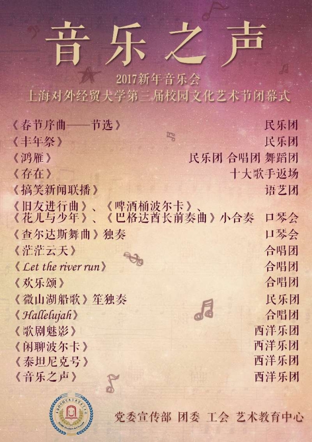 关于举办“音乐之声”2017新年音乐会暨第三届校园文化艺术节闭幕式的通知