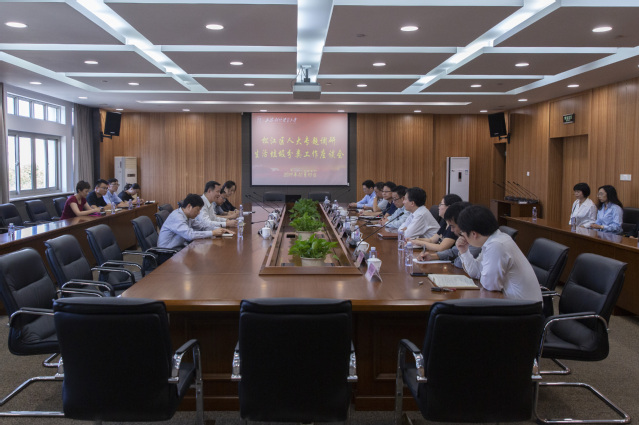 10月10日下午,松江区人大常委会主任唐海东一行来我校调研垃圾分类工作情况。校党委书记殷耀在调研会前