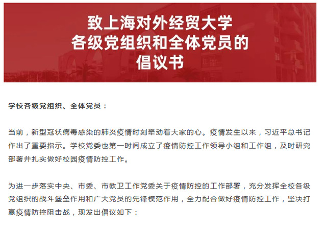 致上海对外经贸大学各级党组织和全体党员的倡议书