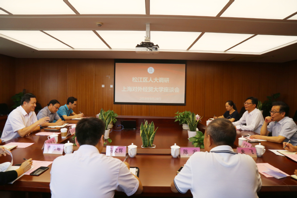 9月28日下午,松江区人大常委会主任唐海东一行6人来??沟餮小Q5澄榧且笠?、副校长张道方出席调研座谈会,党办和人事处负责人以及国际经贸学院教授、松江区人大代表陈宏参加了座谈交流。殷耀代表学校对唐海东一行的到来表示热烈的欢迎,对松江区一直以来给予学校大力的支持和帮助表示衷心的感谢。他简要介绍了学校的基本情况,就如何发挥学校现有的优势和特色支撑松江区经济社会发展等问题进行了探讨和沟通,并希望松江区在人才政策、资源配置等方面能给予学校更大支持,努力实现双方合作共赢。张道方主要从整合学校人才资源、充分发挥智库作用等方面提出深化区校合作的相关建议和思路。唐海东对学校党委给予本次调研活动的高度重视表示感谢,并对松江区人大代表陈宏提案工作和履职情况给予了肯定。他重点介绍了G60科创走廊的建设和松江大学城双创集聚区的推进等情况,希望学校积极参与到松江区的建设中来,加强互动和交流,充分共享信息和资源,推动区校共同向前发展。
