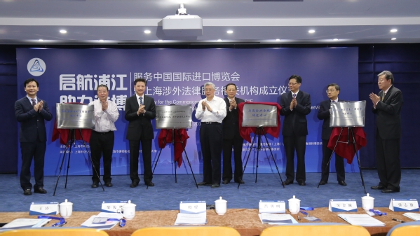 9月26日,“启航浦江·助力进博”——服务中国国际进口博览会暨上海涉外法律服务相关机构成立仪式在古北校举行。本次活动由上海市司法局主办,上海市企业法律顾问协会、上海市律师协会、我校承办,上海市?;捞┞墒κ挛袼榷嗉抑墒κ挛袼?。来自上海市委政法委副书记章华、上海法学家企业家联谊会会长柴俊勇、上海市司法局副局长王协、上海市经济与信息化委员会副主任吴金诚以及上海市发展涉外法律服务业联席会议成员,各大院校的专业学者,相关央企、市企、外企,本市涉外法律服务示范律师事务所相关律师、知名媒体以及法学院研究生近200人参加成立仪式。校党委书记殷耀出席活动并致开幕辞,他希望涉外法律服务团在服务进博会过程中能够展现上海律师品牌形象,同时希望今天成立的四个中心能整合资源、发挥优势,以更多的成果促进上海涉外法律服务业的发展。仪式上,与会领导为“(进口博览会)涉外法律服务中心”“上海企业合规研究中心”“上海企业涉外法律联合培训中心”和“国际金融与贸易法律事务研究中心”四个中心揭牌。其中,上海企业合规研究中心和国际金融与贸易法律事务研究中心由我校法学院与上海市法律协会、上海市企业法律顾问协会共同组建成立