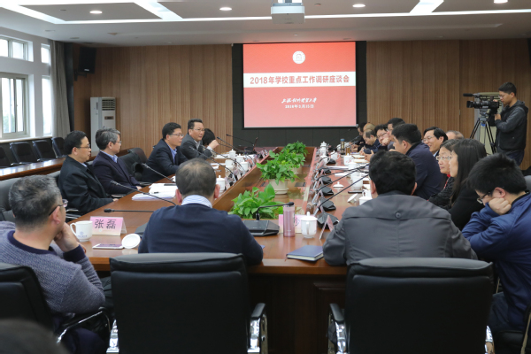 2月8日上午,学校在古北校区行政楼311会议室召开2018年重点工作调研座谈会,深入学习贯彻党的十九大精神,就如何扎实推进学校2018年各项重点工作,听取学院院长、教授代表和部分机关职能部门负责人的意见和建议,为新学期学校工作起好步、开好局,夯实基础,凝心聚力,做好充分准备。学校党委书记殷耀、校长朱国宏、副校长徐永林出席会议,会议由殷耀主持?;嵘?,与会同志聚焦学科建设、教育教学、师资队伍等学校重点工作和广大师生员工所思所盼所想的重点问题,积极建言献策,提出了工作思路和建议。在学科建设方面,要主动对接服务国家战略和上?!拔甯鲋行摹苯ㄉ?,在“一带一路”经贸合作关系、自由贸易港建设等方面加强研究,并依托高原学科建设以点带面、以老带新,引育并举,加强青年人才培养。在本科教学方面,要以质量文化建设为抓手,以一流本科、一流专业和一流人才建设为重点,深化人才培养模式改革,着重加强一流课程建设,抓好本科教学审核评估整改,注重问题导向,狠抓工作落实,健全保障体系,持续提高人才培养质量。同时,与会同志围绕学位点建设、卓越人才培养、中外合作办学、教材建设、思政课程和在线课程建设等方面进行了深入探讨和交流?;?/a>