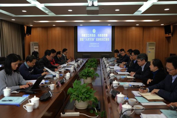 12月13日下午,市教卫工作党委、市教委“人才30条”专项督查组一行6人来到学校,就贯彻落实“人才30条”(含“人才20条”)相关工作情况进行实地督查。校党委书记殷耀,党委副书记、副校长祁明,副校长陈洁出席,学校相关职能部门和学院负责人参加会议。督查组组长、上海电力学院原院长曹家麟主持督查汇报会,并介绍了专项督查的背景和工作安排。殷耀代表学校作了贯彻落实“人才30条”的情况汇报。他指出,学校党委高度重视本次人才工作专项督查,力争通过全面总结梳理学校实际情况,深入分析查找主要问题,为进一步强化人才强校战略、深化人事制度改革、推动人才工作再上新台阶奠定基础。他从健全党管人才工作格局、大力引进高层次人才、打造高水平人才团队等方面,介绍了学校人才工作推进落实情况,并结合学?!笆濉笔乱蹈母镉敕⒄拐铰阅勘?,分析了学校人才工作中存在的主要问题,提出了下一步的工作设想?;嵘希讲樽槌稍焙脱2位崛嗽苯辛嘶ザ涣??;惚ɑ岷螅讲樽橥ü霰鸱锰?、高层次人才座谈会、查阅资料等方式,对学校“人才30条”的贯彻落实情况进行了深入督查和调研。反馈会上,曹家麟代表督查组向学校初步反馈了督查意见,充分肯定了学校