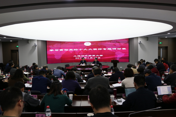 为深入学习贯彻党的十九大精神,根据中央统一部署要求,学校于1月18日-19日开展“学习贯彻党的十九大精神专题研讨班”集中培训。学校全体中层干部参加了培训。校党委书记殷耀出席开班式和结业式并作主题报告,校长朱国宏作专题报告,校党委副书记、副校长祁明主持培训班开班式和结业式??嗍缴希笠髁颂馕短岣哒握疚?、强化问题导向,主动担当作为》的开班动员报告。报告从提高政治站位,深入学习领会习近平新时代中国特色社会主义教育思想;强化问题导向,全面深入分析、齐心协力破解学校改革创新、转型发展难题;主动担当作为,努力成为信念、政治、责任、能力、作风全面过硬的干部等三个方面,根据新时代、新形势、新任务、新要求,对全体干部提出了殷切希望和迫切要求。培训班上,朱国宏作了题为《以创“双一流”精神推进学校内涵式发展》专题报告,就师生关心的学校办学定位、学科建设、人才队伍建设、人才培养、绩效工资改革和后勤服务等话题作了深入阐述。他对全体干部提出了三点要求:一是进一步学习贯彻党的十九大精神,牢固树立“四个意识”;二是始终做到守土有责、守土负责、守土尽责;三是科学谋划好当下和未来事情,以良好的精气神,主动担当作为