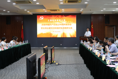 6月30日,庆祝中国共产党成立96周年座谈会暨支部主题党日和组织生活观摩交流活动在信息楼503会议室举行。校党委书记殷耀,校党委副书记、副校长祁明,党委职能部门负责人、各二级单位党组织书记、教工支部书记和学生支部书记代表、党建主管等出席了座谈会。座谈会由祁明主持。座谈会上,与会人员观摩了统计与信息学院学生党支部举行的党员政治生日主题党日活动。此次活动以“喜迎十九大,学‘习’进行时”为主题,分6个环节举行,分别是:播放“不忘初心,我入党的那一天”主题微视频,7位党员回顾了入党那一天的情景和感受;学生党员讲述了青年时代习近平的故事;党员团干部分享了党建带团建的工作感悟;老党员戴金华带领全体党员重温入党誓词;殷耀和祁明向入党日期在6月26日至6月30日的6名学生党员赠书;师生党员互赠祝福卡片。这是我校举行的第一场党支部主题党日活动观摩交流,为各二级单位开展主题党日活动观摩交流拉开了帷幕。观摩结束后,二级单位党组织书记代表、教工支部书记代表、学生支部书记代表先后作了交流发言,结合个人和党支部建设实际谈了体会。他们感到此次主题党日活动主题鲜明、形式活泼、充满感动、印象深刻。主题党日活动结束后,殷
