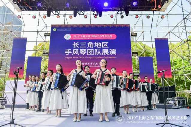 4月13日,第36届“上海之春”国际手风琴艺术周在上海虹桥中心花园区举行,上经贸大附属松江实验学校手