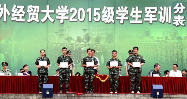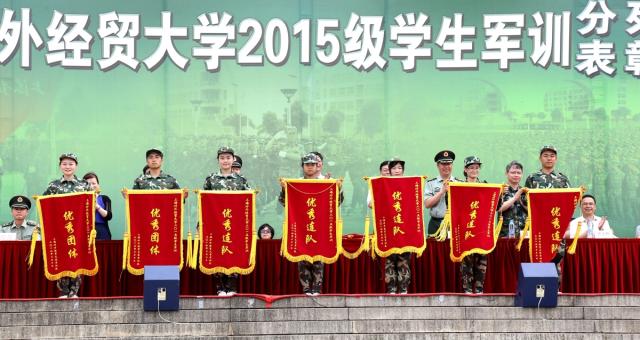 7月7日上午,我校2015级学生军训分列式暨表彰会在校图文信息大楼南广场举行。校党委书记殷耀、校长孙海鸣、中国人民解放军某部队首长钱俊、军训旅旅长李多瑜、中国人民解放军某部作训科科长谭蕊、军训旅参谋长朱应才、校党委副书记楼军江、校党委副书记、副校长、军训工作总指挥祁明、副校长聂清、副校长徐永林,以及各部门相关领导、各学院院长、党委书记、副书记、军训旅旅部、团部领导等出席。分列式由军训旅参谋长朱应才少校主持,表彰会由军训旅政委兼政治部主任严大龙主持。