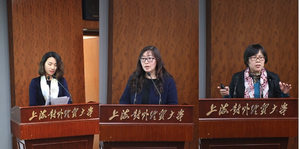会上,荣获上海市教育系统三八红旗手荣誉称号的工商管理学院辅导员施毅婷、荣获上海市教育系统三八红旗集体荣誉称号的国际商务外语学院英语教研室负责人孙雪瑛、我?!案九〖液吐柽湫∥荨贝唇ǖノ还噬涛裢庥镅г旱澄榧俏?/SPAN>建平先后作了交流发言。
