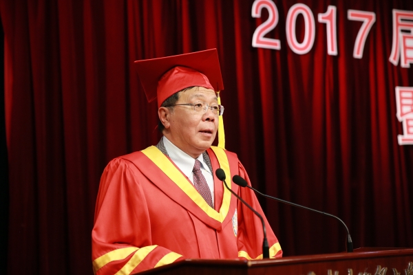 在毕业典礼暨学位授予仪式上,孙海鸣发表了热情洋溢的讲话。他首先表达了对全体毕业生的祝福:希望毕业生生活幸福,人生出彩。孙海鸣向毕业生提出几点希望:一是希望同学们能够胸怀理想,做一个敢于担当的人;二是希望同学们守住底线,做一个自律正直的人;三是希望同学们能够脚踏实地,做个知行合一的人。最后他引用北宋名士张载的名言“为天地立心,为生民立命,为往圣继绝学,为万世开太平”与毕业生共勉,希望毕业生能恪守知识分子的使命,不忘初心,脚踏实地,为民族复兴和人民幸福不懈努力,实现自己的人生价值。