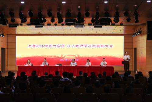 9月12日下午,学校在古北校区综合楼隆重举行2017年教师节庆祝表彰暨审核评估动员大会。校领导殷耀、朱国宏、祁明、陈洁、聂清、徐永林、教师代表、学生代表近400人出席会议?;嵋橛尚5澄榧且笠鞒帧?/SPAN>