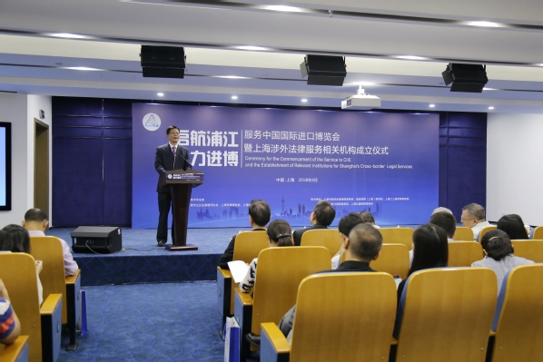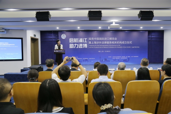 9月26日,“启航浦江·助力进博”——服务中国国际进口博览会暨上海涉外法律服务相关机构成立仪式在古北校举行。本次活动由上海市司法局主办,上海市企业法律顾问协会、上海市律师协会、我校承办,上海市海华永泰律师事务所等多家知名律师事务所协办。来自上海市委政法委副书记章华、上海法学家企业家联谊会会长柴俊勇、上海市司法局副局长王协、上海市经济与信息化委员会副主任吴金诚以及上海市发展涉外法律服务业联席会议成员,各大院校的专业学者,相关央企、市企、外企,本市涉外法律服务示范律师事务所相关律师、知名媒体以及法学院研究生近200人参加成立仪式。