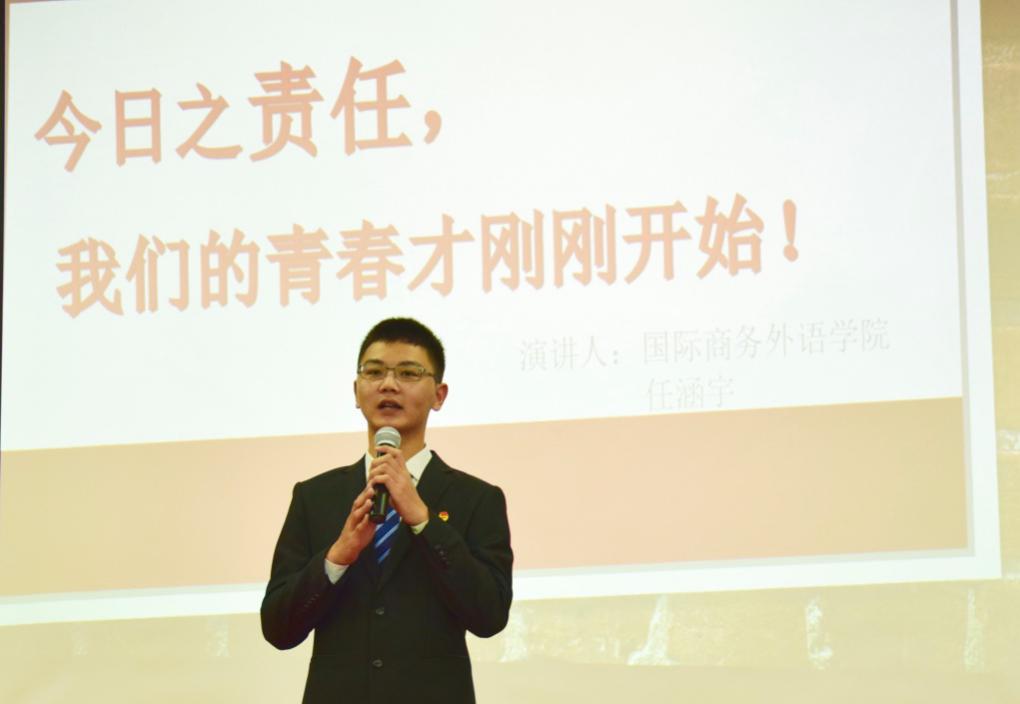 经过各个学院的层层选拔,共有九名同学进入最后的决赛。比赛中,会展与旅游学院的谢雅妮用自己的亲身经历为同学们讲述了“我们的未来比我们想象的更美好”;马克思主义学院的黄克柔则深入研读时代趋势,发出了“拥抱新时代,践行新思想”的声音;国际商务外语学院的熊正从国之栋梁谈到生活实践,呼吁青年一代敢于尝试,勇敢迈出第一步;外语学院的任涵宇则从责任谈起,直击众人心扉,扛起肩上的责任,以青春自我谱写华章。