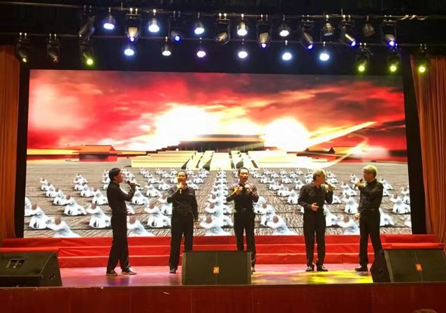 大会第二阶段举行了纪念改革开放40周年文艺演出,我校选送并通过竞演的男生小组唱《少林.少林》获得了现场观众的好评,本次男声小组唱由徐家仪、戴金华、陈国强、侯日煌、杨红宝五位退休老同志组队。