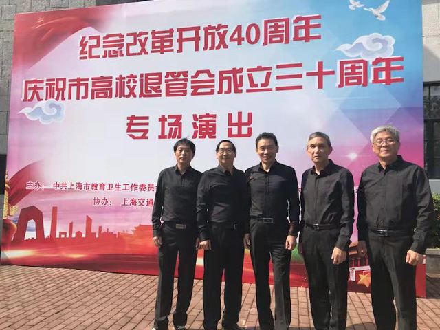大会第二阶段举行了纪念改革开放40周年文艺演出,我校选送并通过竞演的男生小组唱《少林.少林》获得了现场观众的好评,本次男声小组唱由徐家仪、戴金华、陈国强、侯日煌、杨红宝五位退休老同志组队。