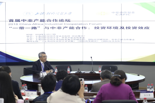 11月17日,由我校和中非产能合作基金主办,学校国际发展合作研究院、国际经贸研究所承办的首届中非产能合作论坛(2018 China-Africa Industrial Cooperation Forum)“‘一带一路’与中非产能合作:投资环境及投资效应”研讨会在古北校区举行。论坛开幕式由我校国际发展合作研究院院长黄梅波教授主持。副校长陈洁和中非产能合作基金有限责任公司温建东副总经理在开幕式上致辞。联合国开发计划署、中国进出口银行、国家外汇管理局的代表以及一批来自中国社科院西亚非洲研究所、复旦大学、南京大学、厦门大学、浙江师范大学、上海师范大学、广东外语外贸大学等在非洲经济研究领域拥有卓越影响力的一批专家学者和从事中非产能合作实际业务的金融机构和企业代表出席本次论坛。