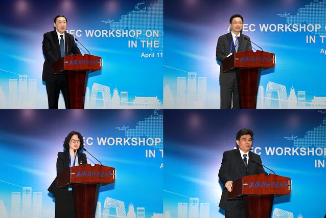 4月11-12日,由商务部国际经贸关系司主办、我校承办的“APEC优化亚太地区投资措施研讨会”在我校古北校区举行。来自澳大利亚、中国、中国香港、印度尼西亚、日本、马来西亚、菲律宾、巴布亚新几内亚、泰国和越南等APEC成员经济体的官员代表,来自联合国贸易和发展会议(UNCTAD)、世界贸易组织(WTO)、经济合作与发展组织(OECD)、亚太经济合作组织(APEC)秘书处和国际可持续发展研究院等国际组织和机构的嘉宾,商务部、国务院发展研究中心、中国国际贸易促进委员会、中国太平洋经济合作委员会、中国社会科学院、清华大学、复旦大学、上海大学和我校的官员和专家学者,上海、广东、福建、辽宁、河南、湖北、重庆、四川和陕西等自由贸易试验区管理委员会代表约120人出席研讨会。受商务部副部长王受文委托,商务部国际经贸关系司司长张少刚出席研讨会并致开幕辞,上海市商务委员会副主任杨朝、我校副校长陈洁致欢迎辞,全国人大常委会委员陈福利围绕《中华人民共和国外商投资法》发表主旨演讲。