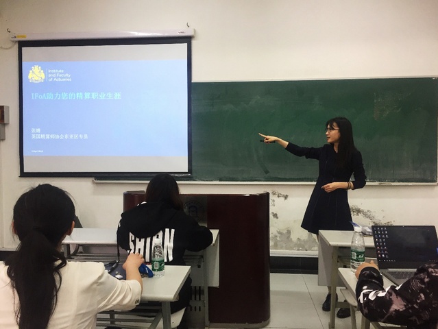 随后,张婧为我校学生作了主题为“IFoA助力您的精算职业生涯”的演讲。她详细介绍了特许精算分析师和英国精算师的人才培养与考试体系、精算师的工作特点、精算师职业规划等内容。统计与信息学院副院长郝程程、王利娟以及来自统计、数据科学、金融、国际贸易、会计等专业的学生参加了本次活动。