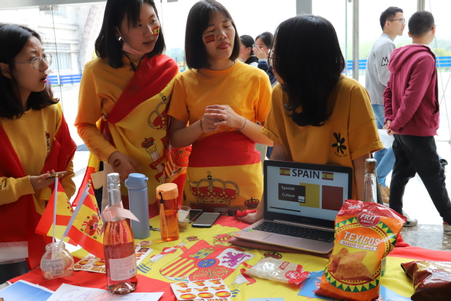 本次活动共展示了三十个国家的不同文化特色,学生们精心布置了各个展台,尽可能最大程度地反映出所研究国家的鲜明风格及商务文化特色。多姿多彩的各国服装,展现出异域风情和各国特色;琳琅满目的各式美食,引来了中外访客的咨询与品尝。各个展台的学生精心设计了互动游戏、有奖竞猜,热心地回答参观者的提问,并特别向参观者介绍了各组所研究国家的商务文化,并配以角色扮演、陈述和分析,指出了与该国进行商务交流时应注意的问题并提出了自己的见解与建议。
