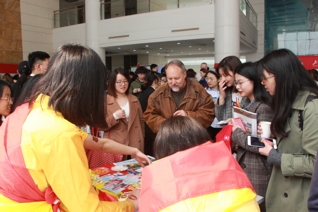 本次活动共展示了三十个国家的不同文化特色,学生们精心布置了各个展台,尽可能最大程度地反映出所研究国家的鲜明风格及商务文化特色。多姿多彩的各国服装,展现出异域风情和各国特色;琳琅满目的各式美食,引来了中外访客的咨询与品尝。各个展台的学生精心设计了互动游戏、有奖竞猜,热心地回答参观者的提问,并特别向参观者介绍了各组所研究国家的商务文化,并配以角色扮演、陈述和分析,指出了与该国进行商务交流时应注意的问题并提出了自己的见解与建议。