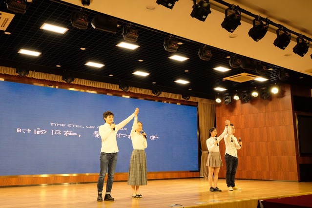 5月9日晚,“品经典 筑青春”红色经典诵读晚会在信息楼507举行。本次晚会由图书馆主办、大学生艺术团语言艺术团、Q剧团与思源读者协会共同承办,校团委书记缪韵笛、图书馆副馆长侯占奎,工商管理学院党委副书记施毅婷等出席本次活动,300多名来自我校二级学院的同学,20多位来自附校的小朋友们到场聆听了此次诵读会。