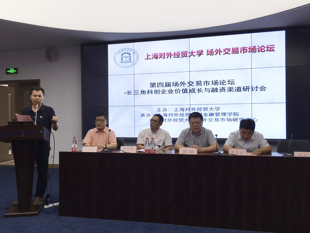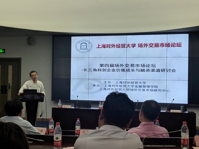 6月8日,第四届场外交易市场论坛暨长三角科创企业价值成长与融资渠道研讨会在古北校区举行。本届论坛由我校主办,金融管理学院、场外交易市场研究中心承办。论坛得到上海股权托管交易中心和上海立信资产评估公司的大力支持,来自上海市政府发展研究中心、上海市浦东科技金融服务联合会、上海股权托管交易中心、普华永道中国咨询部、中信建投、兴业研究、上海立信资产评估公司、复旦大学、广东财经大学、上海师范大学、上海对外经贸大学、上海立信金融学院、上海商学院等政产学研各界代表近50人共聚一堂展开热烈讨论。