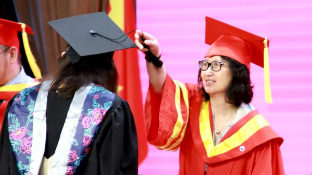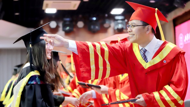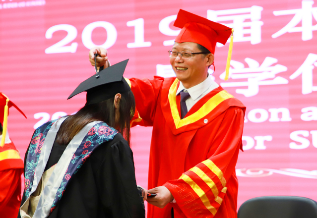 典礼最后,校领导共同为毕业生拨穗并颁发学位证书和学历证书,并与毕业生合影留念。镁光灯下记录了毕业生圆满完成学业的喜悦,聆听校长最后一课后的沉思,与母校和同窗列别的惆怅以及对未来新征程的无限憧憬。无论走到哪里,未来的人生旅途上经贸大的印记将伴随一生;无论离校多久,母校永远是校友温馨的家和心灵的港湾。希望毕业生常回家看看,祝愿2019届全体毕业生在新的人生道路上,事业有成,一帆风顺。