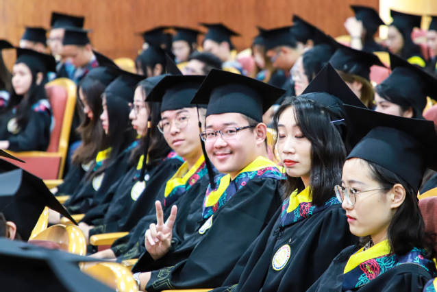 汪荣明引用经济学中的“复利思维”提出三点殷切希望:一是要树立信仰、信念、信心,把好方向,做有追求的人;二是要选择坚定、坚守、坚毅,久久为功,做有定力的人;三是要懂得感谢、感恩、感悟,爱国担当,做有情怀的人。讲话最后,他鼓励毕业生们要以竹子般的韧劲、冲劲和闯劲,秉持贸大人优良传统,立好人生座标,为国家对外开放事业、为这个伟大时代、为实现中国梦交上精彩的人生答卷。