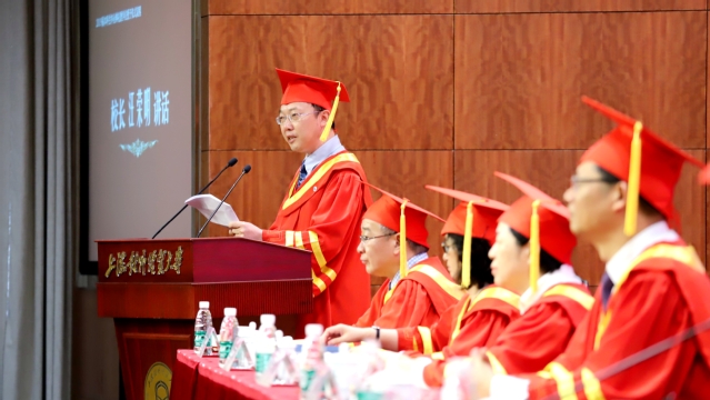 在毕业生即将离开校园走向社会这个人生的重要时刻,校长汪荣明以《亮出青春底色实现复利人生》为题为毕业生上了最后一课。他首先代表学校向全体毕业生表示热烈祝贺,向家长和老师们表示衷心感谢。他谈到,自己于今年“5.20”这一天来到学校工作,在充满爱意的日子里,成为“贸大人”,也意味着要将这份最美好最珍贵的感情传承下去。汪荣明指出,我校既是有着辉煌历史的大学,也是有着巨大发展潜力的大学,还是有着极大凝聚力的大学。他希望毕业生们能够继承发扬校友爱国爱校的光荣传统,这是学校最宝贵的精神财富。