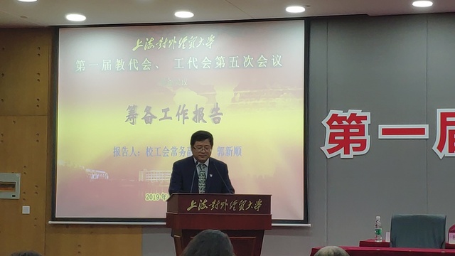 下午2时,大会第一次全体会议在国歌声中开幕,祁明主持会议。校长汪荣明向全体代表作了《勇担时代重任,以实干兴校,以特色强校》的行政工作报告。报告通过两个部分回顾总结了2018年学校行政工作进展与成效,提出了2019年的工作思路和要点。