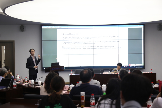 美国研究中心主任陈晓静主持本次会议的主旨演讲,来自哥伦比亚大学商学院Tri Vi Dang教授围绕“中美金融科技生态系统竞争”发表主旨演讲。他对比了中美两国的金融科技公司及金融生态系统,分析了中国金融科技创新飞速发展的原因,并探究了金融科技生态系统的未来发展机遇。随后,与会嘉宾与教授就“金融科技生态系统”展开了热烈的讨论。