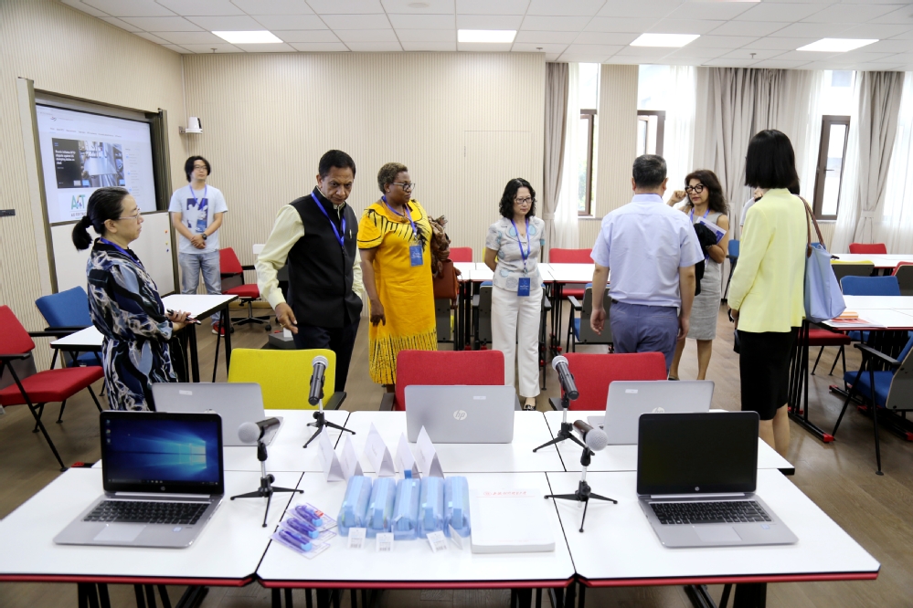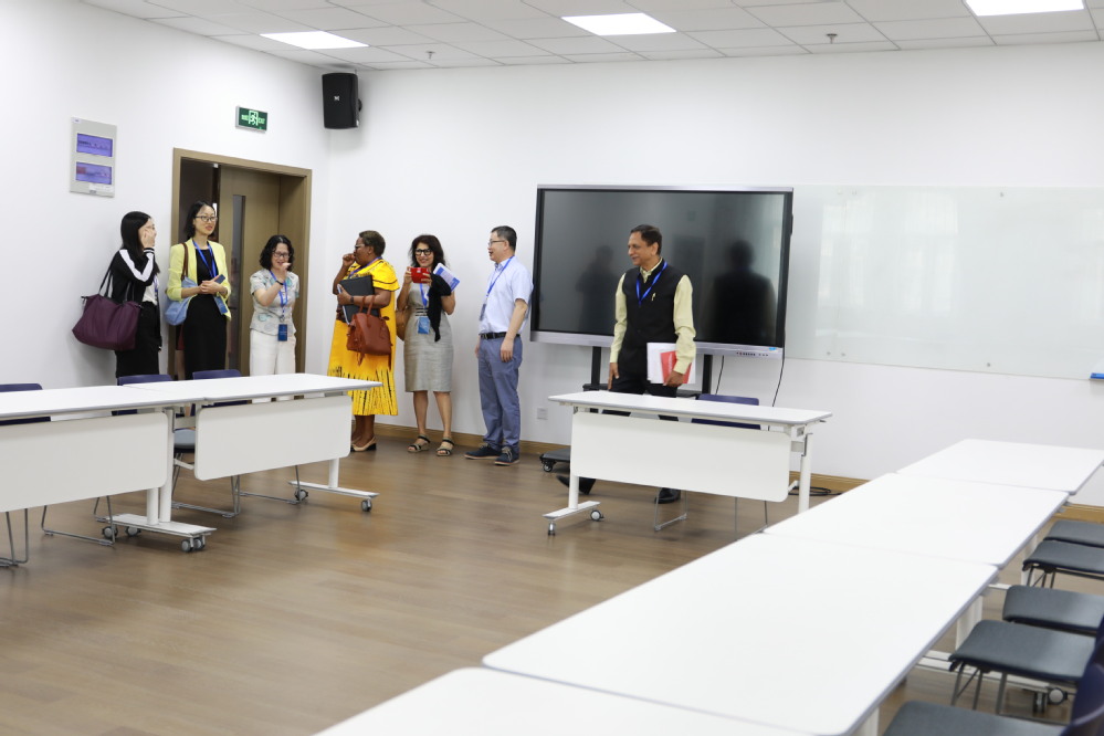 之后,世贸组织代表团与我校RTPCs亚太合作伙伴申请工作小组成员进行了正式的会谈,我校贸易谈判学院院长张磊教授主持会议。会上,考察团成员观看了我校介绍短片,陈洁副校长作了会谈致辞。双方代表就申请工作相关事宜进行了深入的沟通?;嵋榻崾?,考察团成员对我校的培训设施进行了考察,随后又实地考察了学校周边的酒店。