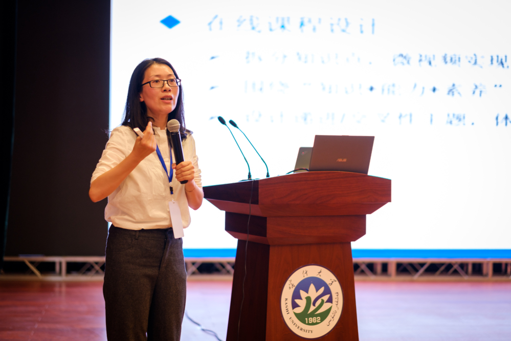 本次研讨会由上海交通大学与喀什大学联合举办,旨在贯彻落实全国教育大会和新时代全国高等学校本科教育工作会议精神,从助力中西部高校加快提升教学水平、促进教育公平发展的角度出发,探索高校优质教育资源共享,进一步推动教育教学综合改革。沈克华在会上作题为“以在线课程共享拓展课程育人维度,以混合教学提升课程育人质量”的专题报告,并和与会教师进行了互动交流。