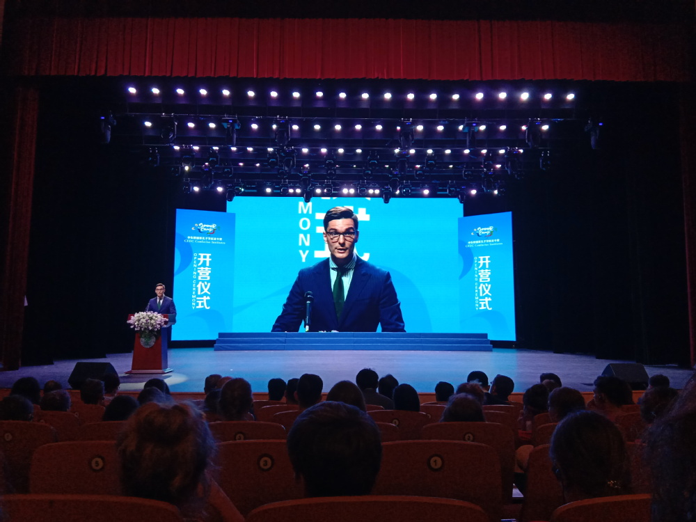 我校是国内在中东欧16国设立孔子学院及孔子课堂最多的高校,此次开营仪式千名营员中有五分之一的营员来自我校三所孔子学院。