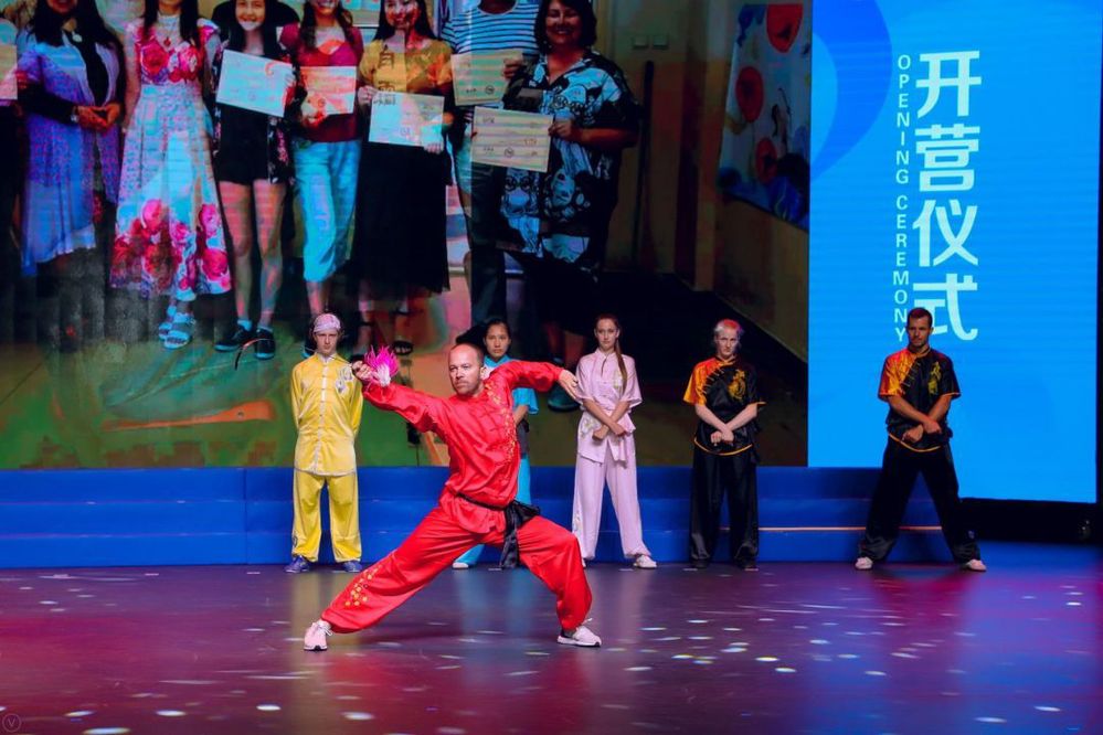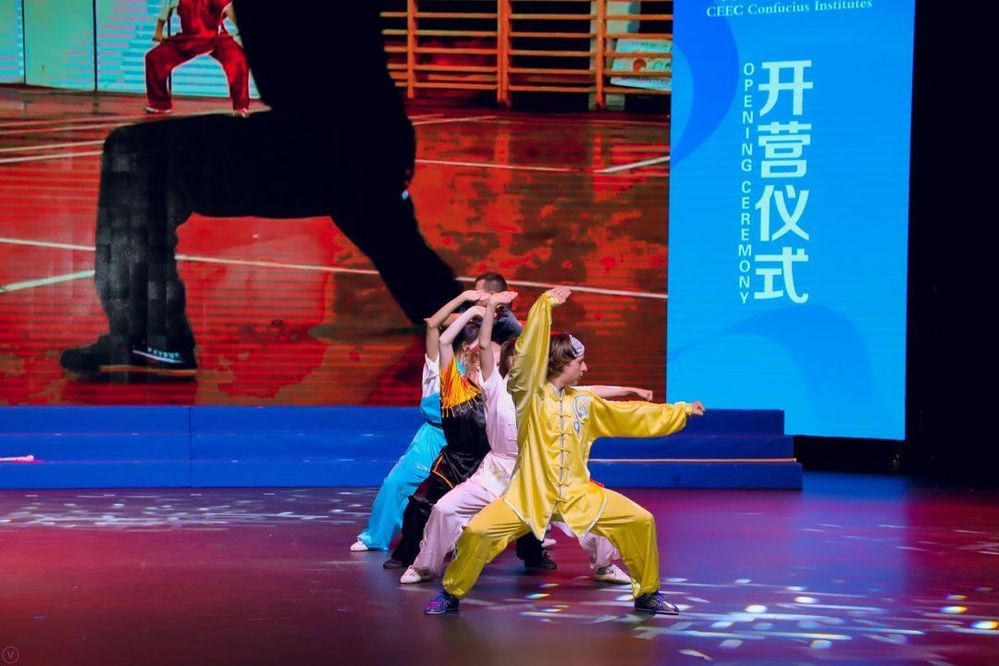 我校斯洛伐克考门斯基大学孔子学院学生为开营仪式带来精彩的中华武术表演。此次开营仪式国家汉办共甄选三个表演节目,考门斯基大学孔子学院武术《多瑙河武魂》成为开场第一秀,博得全场中东欧国家使节、国家汉办领导及全体千名营员集体喝彩。