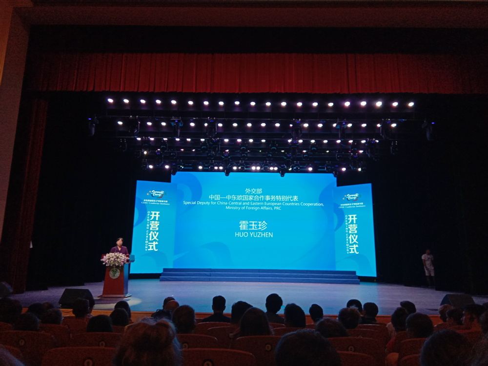 7月22日,为配合“2019年中国—中东欧国家教育/青年交流年”,促进中国与中东欧国家人文交流,献礼建国七十周年,孔子学院总部主办的第四届中东欧国家孔子学院夏令营在北京语言大学举办开营仪式??鬃友г鹤懿扛弊芨墒抡怨?、欧洲处处长杨金成、外交部中国—中东欧国家合作事务特别代表霍玉珍、北京语言大学校长刘利、副校长张宝钧、匈牙利驻华大使白思谛、克罗地亚共和国驻华大使达里欧·米海林、拉脱维亚驻华使馆副大使依古娜、斯洛伐克驻华使馆副大使脱寞、北马其顿共和国驻华使馆代办佐理查·塔什科夫斯卡、斯洛文尼亚驻华使馆副大使马博洋,以及来自中东欧16个国家、31所孔子学院的千名师生等齐聚北京语言大学出席本次活动。我校中东欧三所孔院四家孔子课堂200多名学员参加开营仪式。