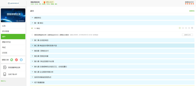 在这一理念推动下,课程教学团队对课程内容进行梳理,根据在线课程需要编写微课拍摄脚本,委托专业制作公司拍摄32个单元10-15分钟的微课教学视频,并上传好大学在线平台让全国大学生共享。该课程2016年成功申报上海高校优质在线课程项目,并于2018年验收通过,获得优秀等级。在这一基础上,2018年,课程教学团队又和全国影响力比较大的中国大学慕课平台合作签订协议,面向更多的大学生和社会相关专业人士免费开放共享,并增加了8个单元的案例分析视频,并开设了连线专家解读贸易热点专栏。目前该课程在中国大学MOOC平台面向全国开放共享,已开课2期,每期选课人数万人左右,居同类课程之首,该课程在全国的知名度也越来越高。
