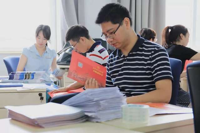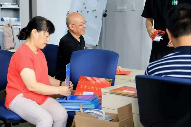 7月27日周六上午,招生办教师和学生志愿者冒着酷暑在古北校区办公室忙碌工作,为2019级本科新生寄送录取通知书大礼包。经过半天的紧张工作,2000多份录取通知书已全部寄出,预计一周内所有新生都将收到今年夏天这份最重要的一份礼物。