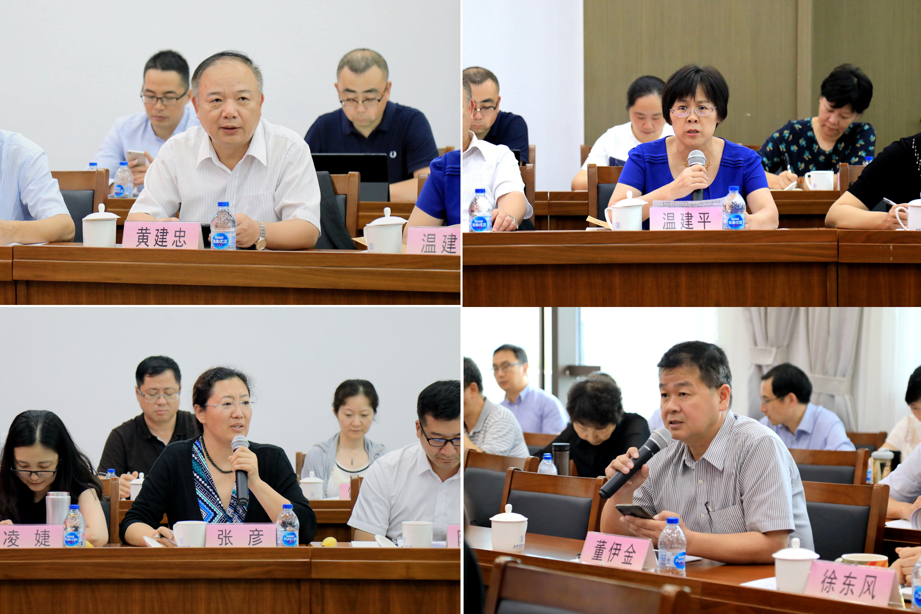 分组研讨后,国际经贸学院院长黄建忠、国际商务外语学院院长温建平、金融管理学院党委书记张彦、机关党委书记董伊金分别代表各小组汇报了研讨的情况。
