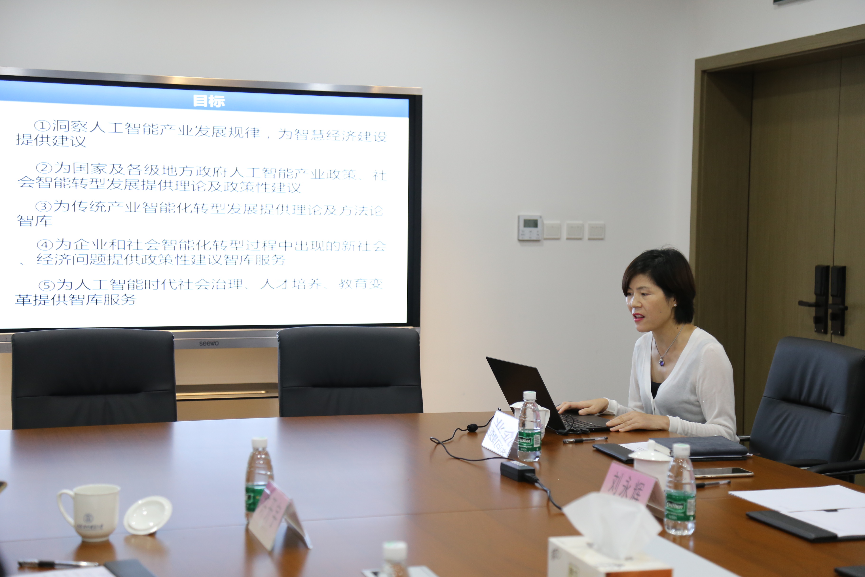 齐佳音从人工智能发展情况、建设平台、目标定位和研究方向等方面汇报了人工智能与变革管理研究院的建设背景,从机构与人员、环境及运行、研究成果、支撑条件和社会影响等方面汇报了研究院的建设基础,并从建设任务和总体目标两个方面汇报了研究院的建设规划。