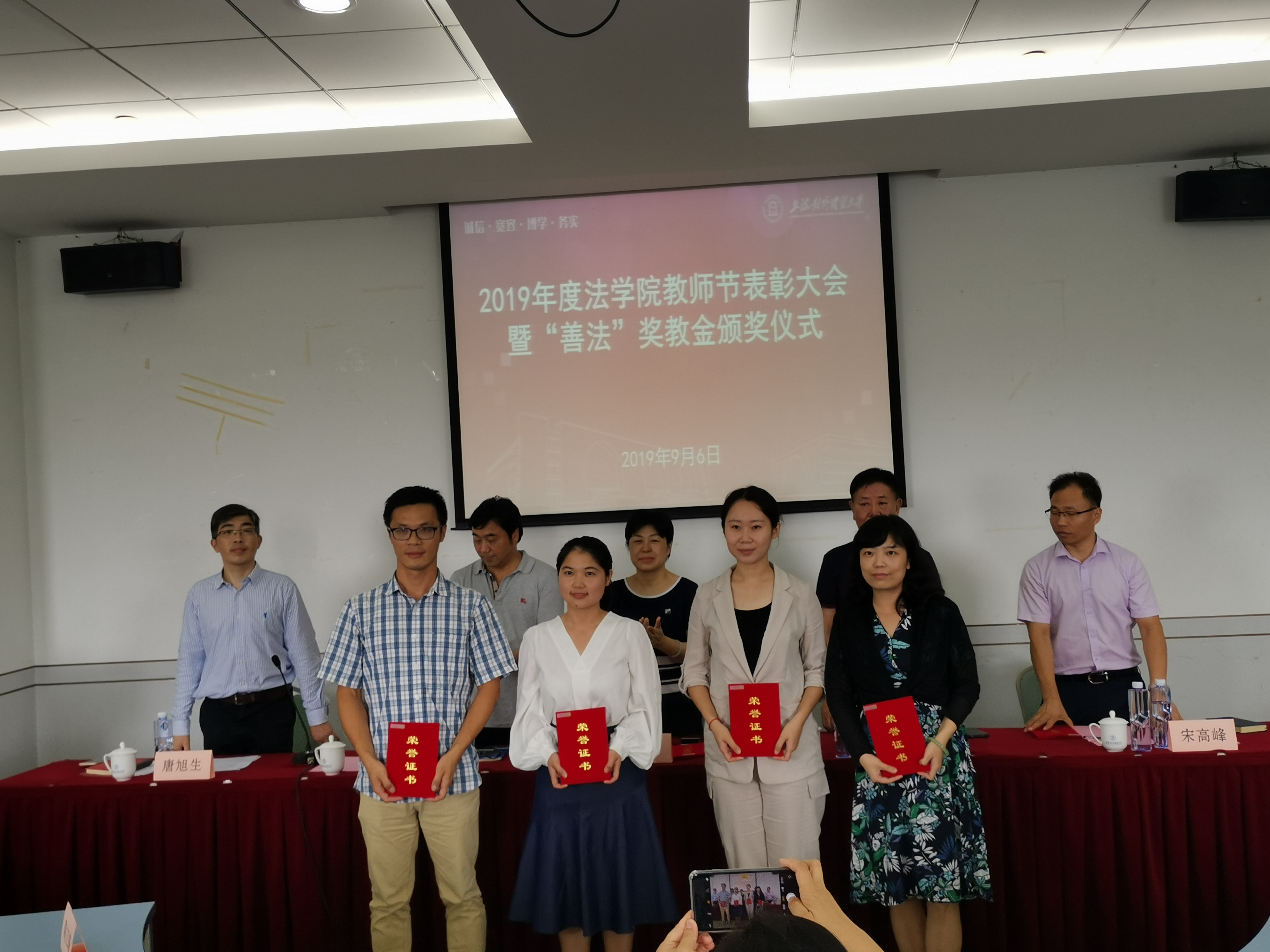 ”善法“奖教金由上海善法律师事务所在我校法学院捐资设立,设立的初衷主要是表彰在法学院科研、教学工作中表现突出的教师,本期共有9位老师获得”善法“奖教金奖励。
