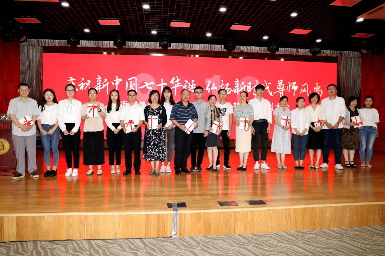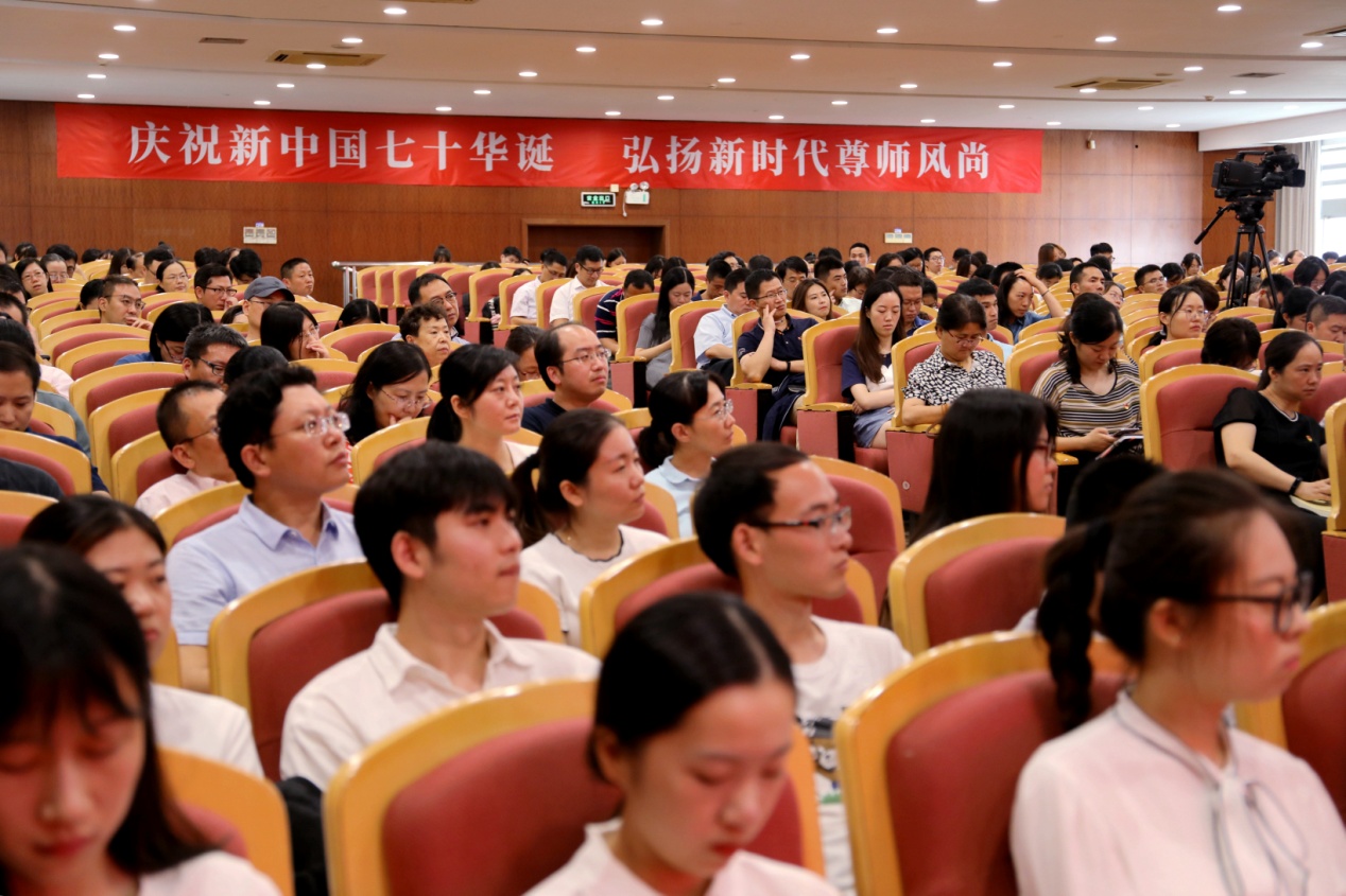 金风送爽,丹桂飘香;为人师表,无限荣光。9月10日下午,主题为“庆祝新中国七十华诞,弘扬新时代尊师风尚”的2019年教师节庆祝表彰大会在信息楼507隆重举行。校党委书记殷耀,校长汪荣明,校党委副书记、纪委书记许玫,副校长陈洁、徐永林、张道方与各单位教师代表、学生代表400余人欢聚一堂,共同庆祝第35个教师节。